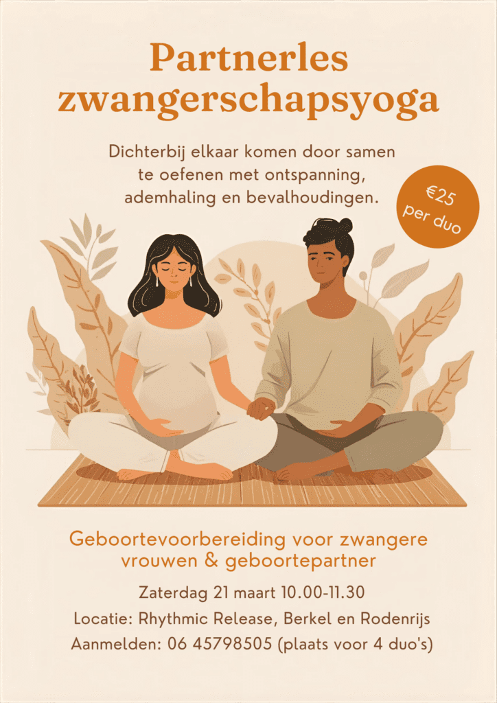 Naast de reguliere yogalessen kun je bij Rhythmic Release ook terecht voor zwangerschapsyoga. Aan deze lessen kun je meedoen van het moment van je positieve zwangerschapstest tot je bevalling. Zwangerschapsyoga helpt jou in verbinding te komen met zowel je eigen lichaam en dat van je kindje als met andere zwangere vrouwen.